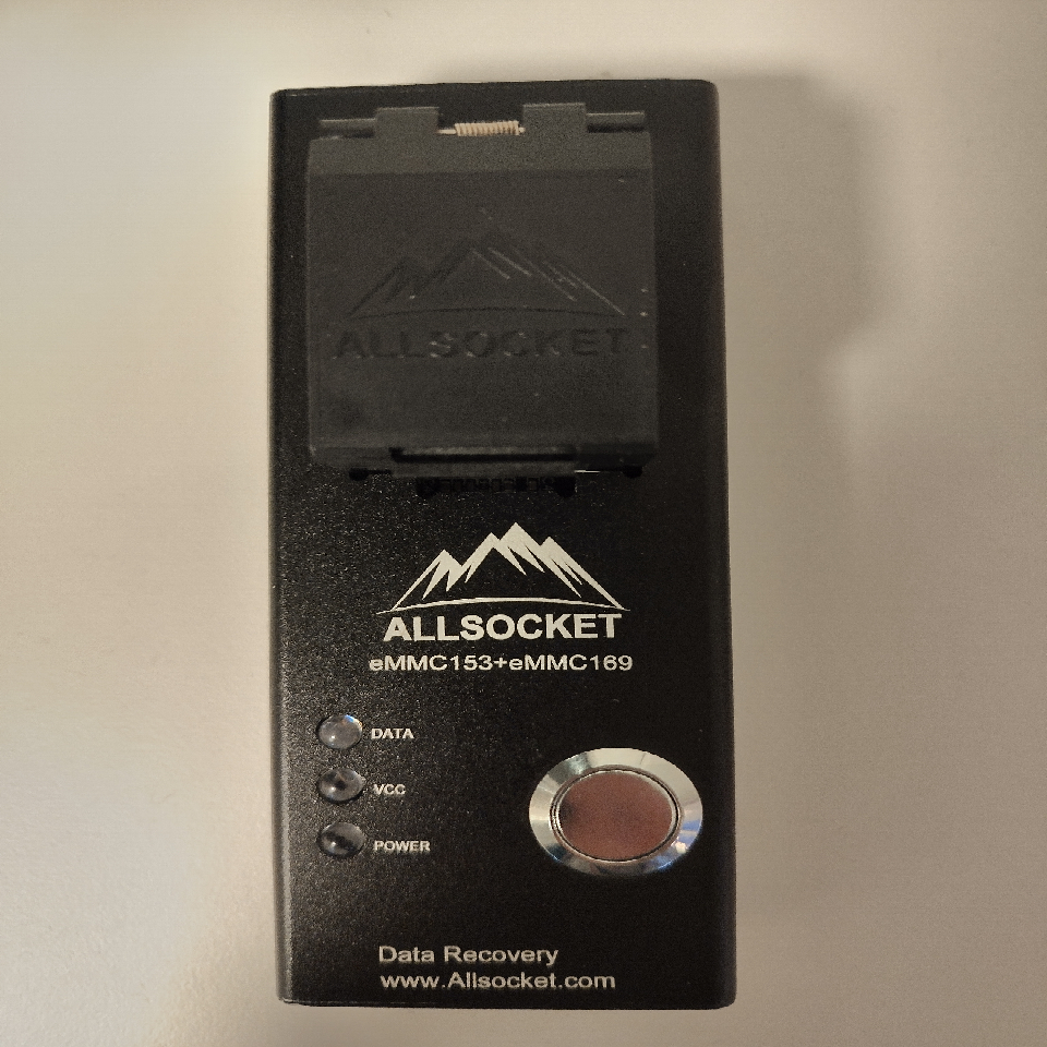 The eMMC data was read using an Allsocket eMMC153 reader and made into an image with
